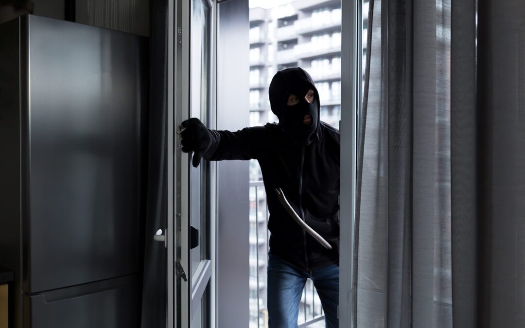 A male thief in a black mask, enters the apartment for robbery, the robber broke the door lock Dec 19, 2023