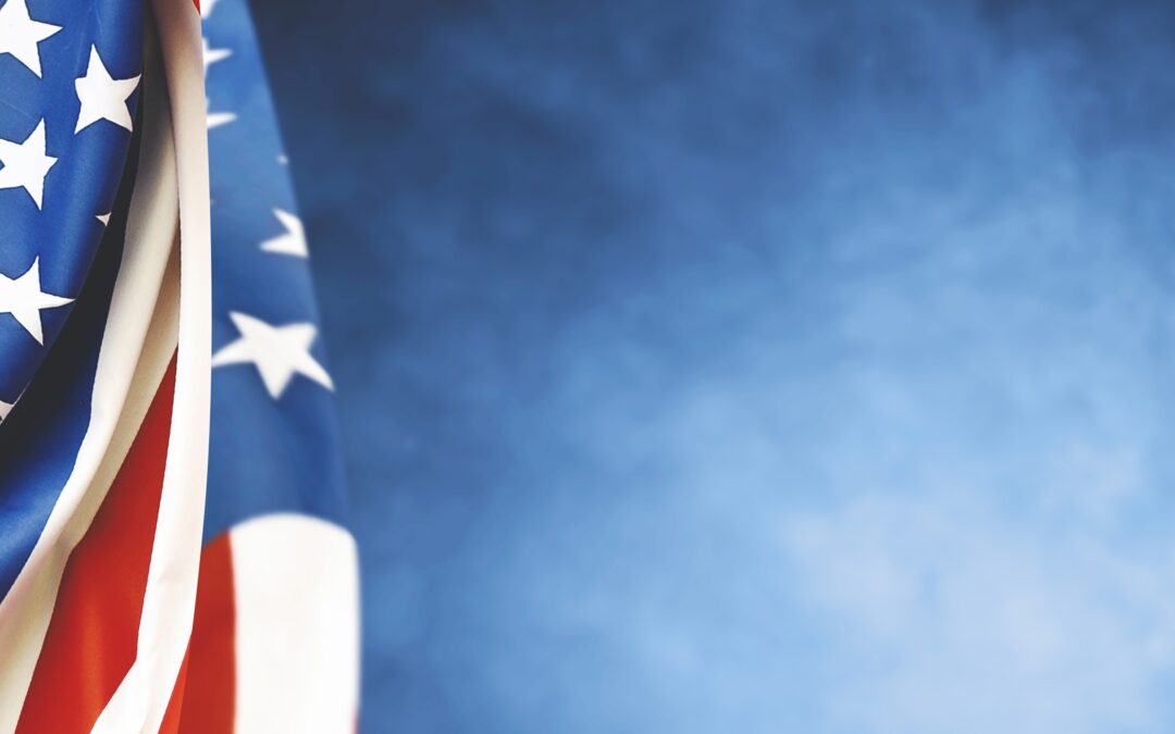 American flag folded on a blue background