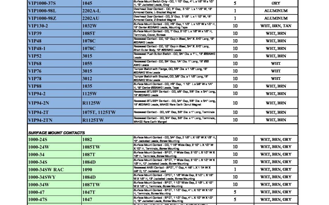 FLAIR INTERLOGIX CONTACT CROSS REFERENCE LIST 1019J